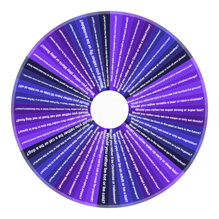 Spin the wheel for a random Would You Rather dilemma. Great for parties, ice breaking, and game nights.